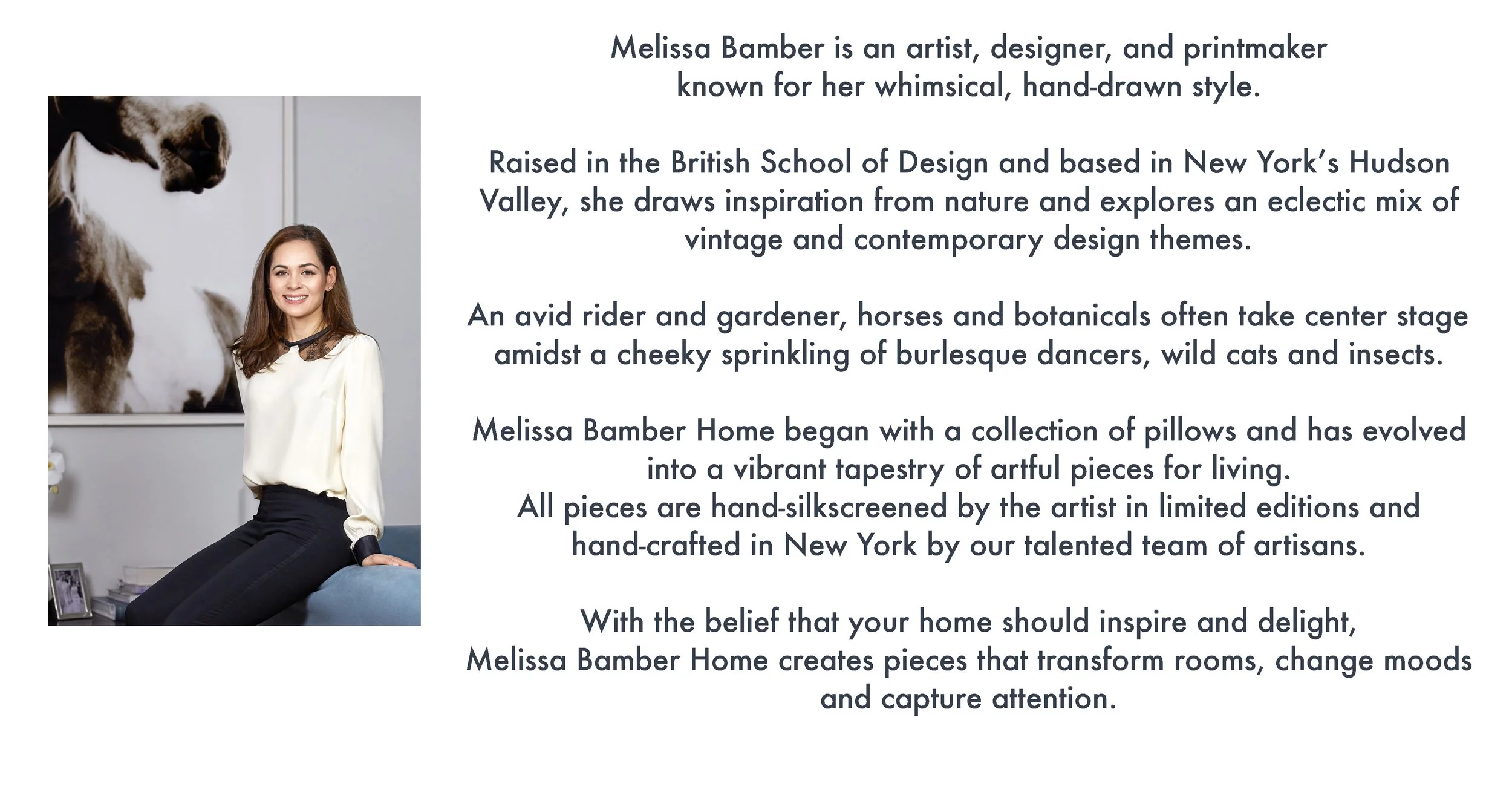 British designer, artist and printmaker Melissa Bamber creates artful, hand-made home decor pieces including art prints, pillows, leather accessories and wallpaper. Melissa Bamber Home is based in the Hudson Valley and New York City. Each piece includes original drawings and designs, perfect for interiors and gifts for every occasion.